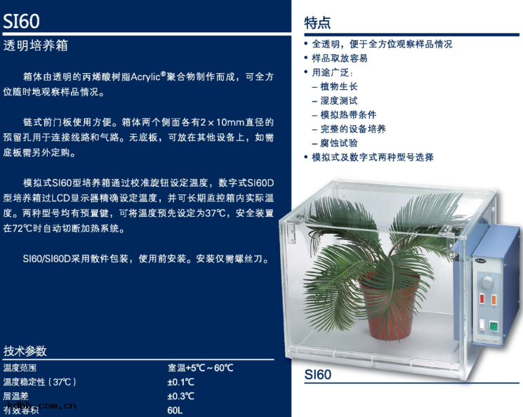 英國 Stuart透明(míng)培(péi)養箱(xiāng) SI60 和 SI60D技術參數