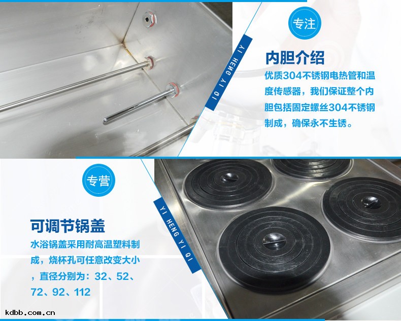 上海(hǎi)一恆電熱(rè)恆溫水浴鍋二孔四(sì)孔六孔八孔採用不(bù)鏽鋼內膽 、燒(shāo)杯孔可任意改變大小 高精度微電腦控制器,控溫精確可靠(kào) 。