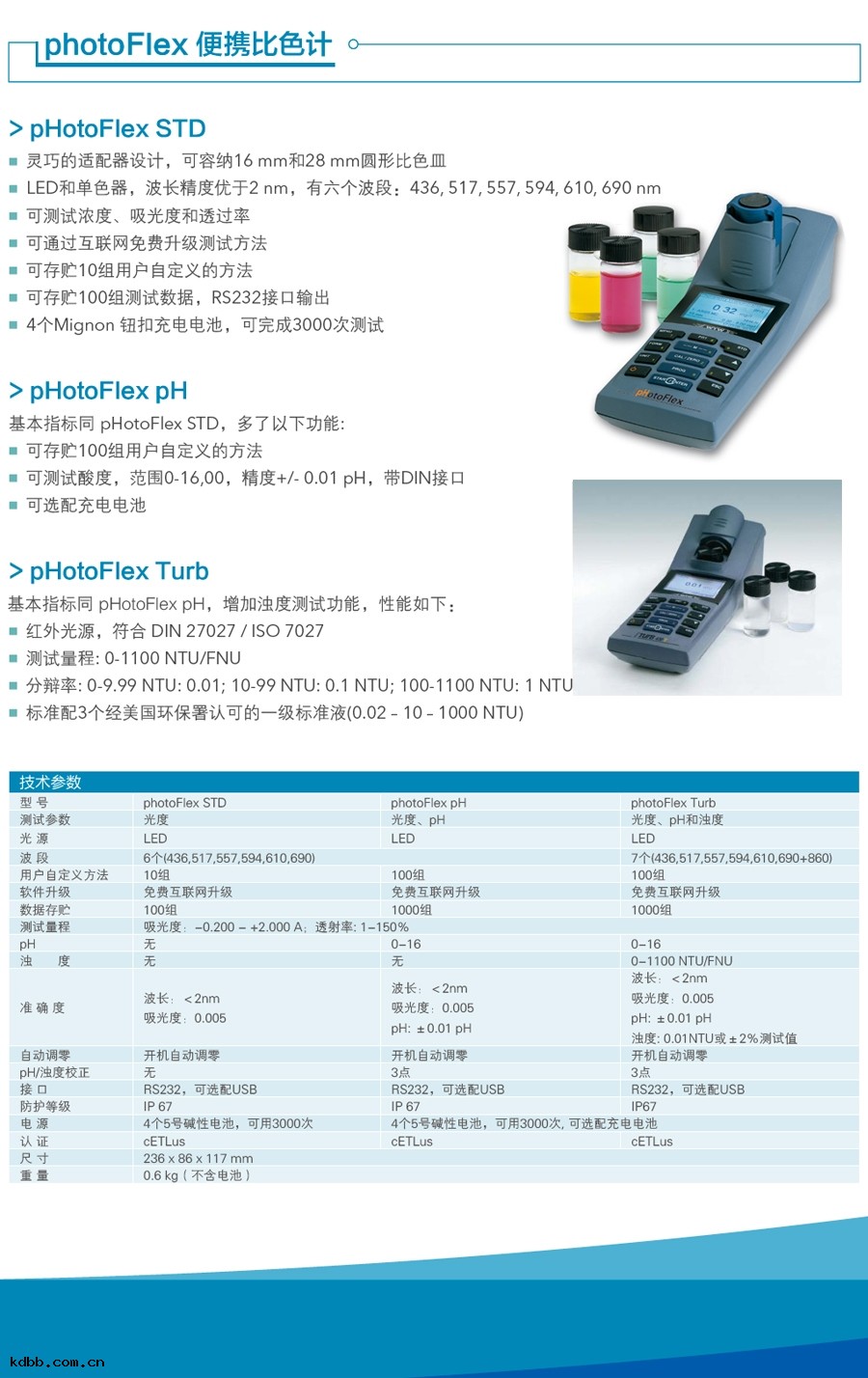 ◆ pHotoFlex Turb可測量濁度,採用860nm波長,測量範圍0-1100NTU